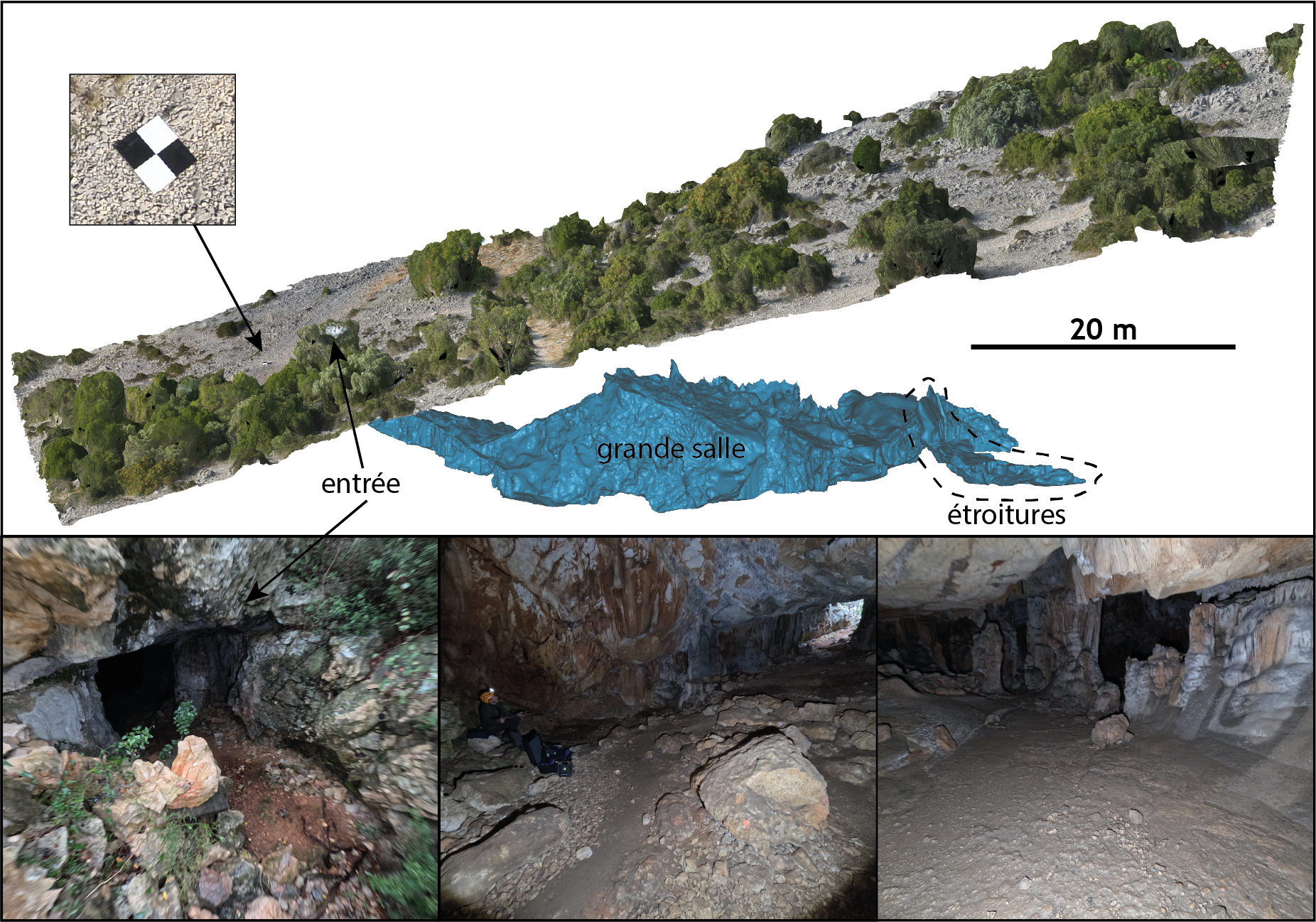 Les levés photogrammétriques réalisés par drone permettent la production de Modèles Numériques de Terrain (MNT) à haute résolution, utiles pour l’analyse morphologique, l’identification de structures karstiques et le suivi de l’évolution des surfaces.