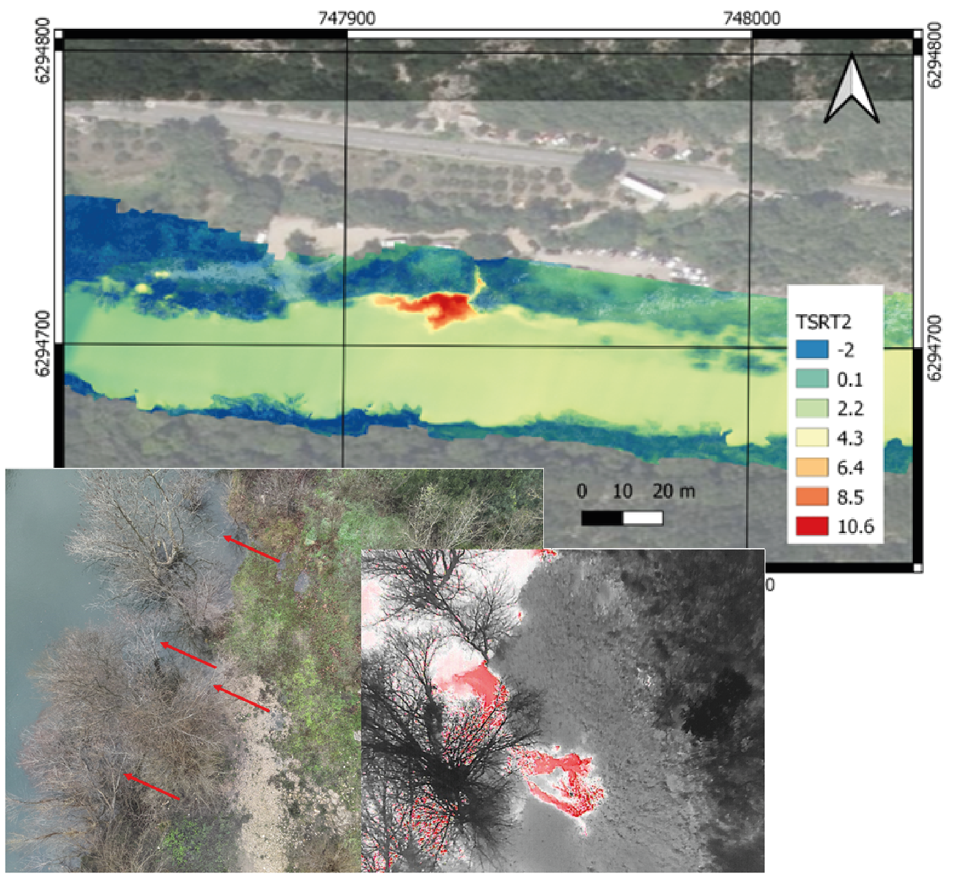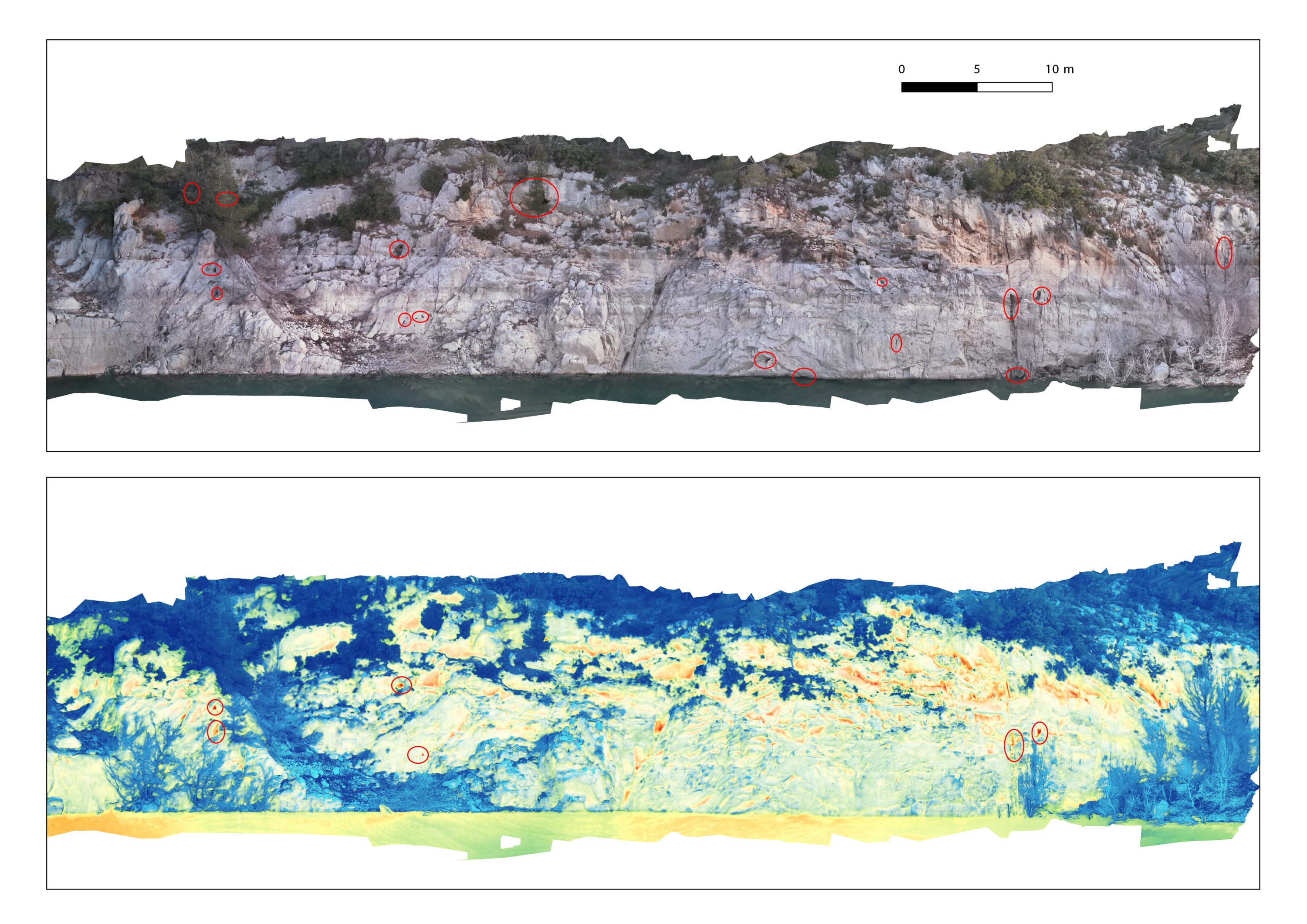 L’imagerie thermique constitue un complément particulièrement pertinent pour la détection de phénomènes hydrogéologiques. Elle permet notamment de localiser des résurgences, des zones d’infiltration ou des entrées de cavités, grâce aux contrastes de température observés en surface.